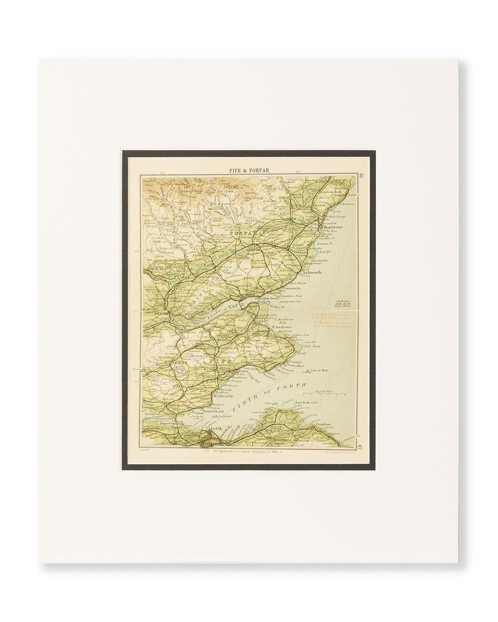 This map hails from c.1914 when John Bartholomew was surveying and producing maps of Scotland. The map shows the areas of Fife & Forfar as well as the Firth of Forth.