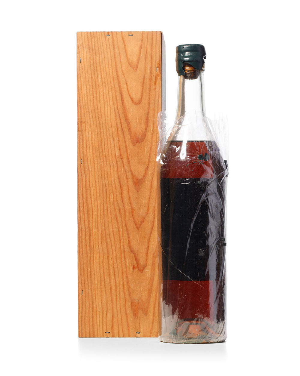 This extremely old and rare cognac was distilled by Moyet in the Cognac region of France in 1864, as can be seen by the wax seal that sits at the bottom right-hand corner of the bottle. The perfect addition to any cognac collection, this bottle has a vintage to be admired.