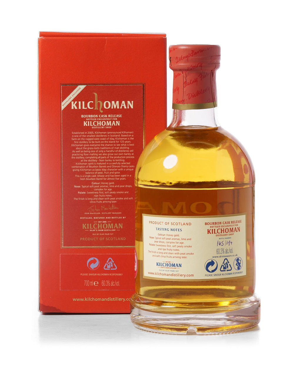 Kilchoman is located on Islay, and has been distilling whisky at a site near Bruichladdich since 2005. Kilchoman was the first distillery to be established on Islay in nearly 125 years. It is best-known commercially for its new spirit release, the inaugural release, and single malts bottled for the annual Feis Ile festival on Islay.