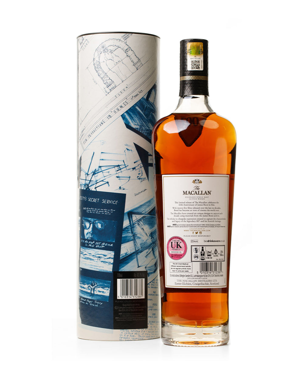 The Macallan James Bond expressions were released in 2022 in celebration of 60 years since the premier of the first James Bond movie - Dr. No - in 1962. Over the last 50 years James Bond has been played by 7 different actors in the last 6 decades.