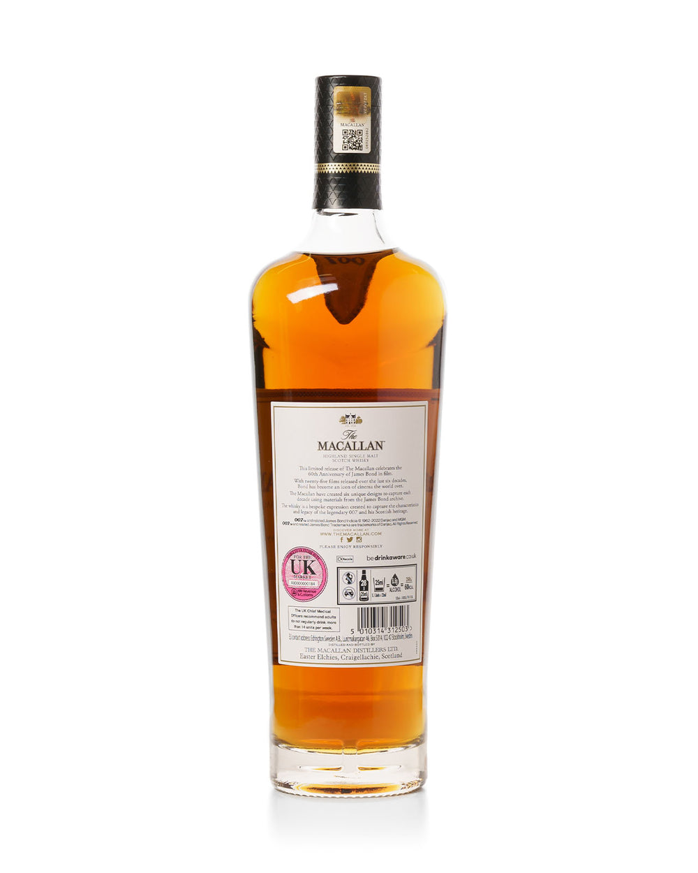 The Macallan James Bond expressions were released in 2022 in celebration of 60 years since the premier of the first James Bond movie - Dr. No - in 1962. Over the last 50 years James Bond has been played by 7 different actors in the last 6 decades.