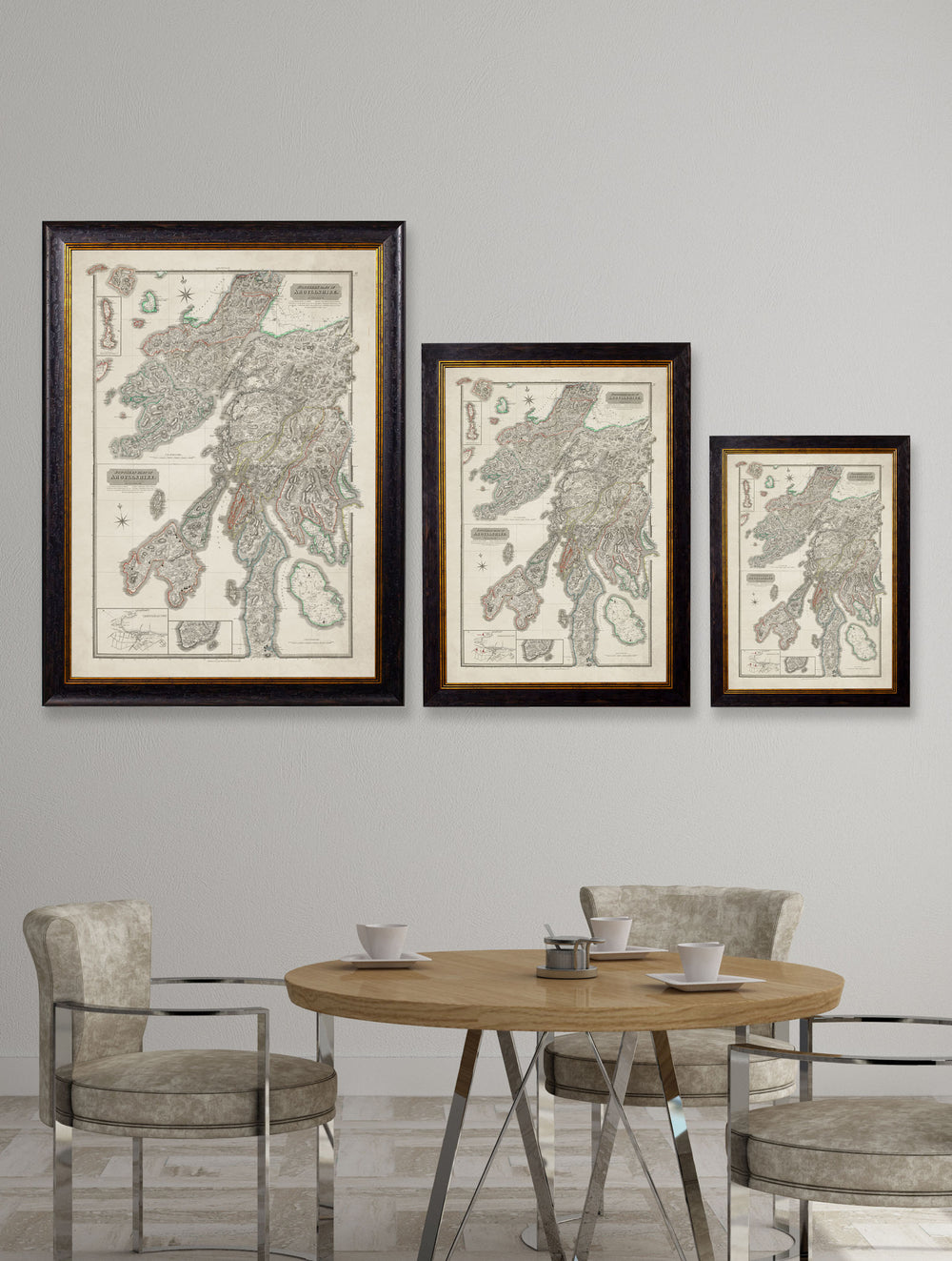 These distillery maps are superbly reproduced from John Thomson’s early 19th Century, Atlas of Scotland maps published in 1832 (this map was released in 1824 but the atlas as a whole in 1832). Depicting the Argyllshire County on a detailed scale and featuring hand colouring, the map sections were originally drawn by William Johnson, and engraved by John & George Menzies. The Northern Part of Argyllshire map section, features regions including Argyll and the Isle of Mull. Islay, the Isle of Jura, and Isle of Arran are depicted on the Southern Part of Argyllshire map section, which also features a street view of Scotland’s historic whisky capital of Campbeltown. Locations named include, Lagavulin, Ardbeg, Bowmore, and Oban which have all shared their names with some of Scotland’s most iconic whisky distilleries.