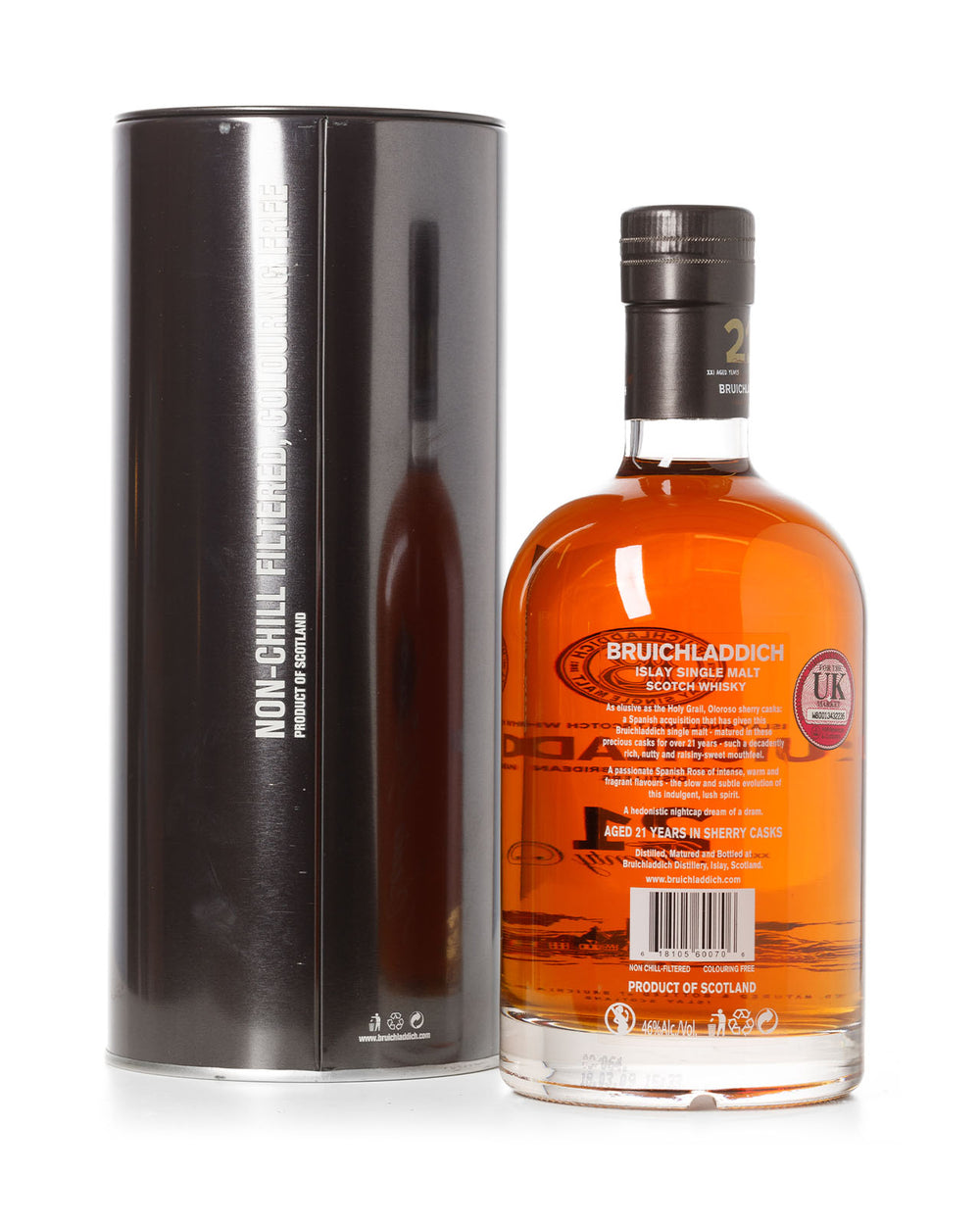 This is a bottle of Bruichladdich 21 year old, 700ml, 46% ABV in original metal tube.