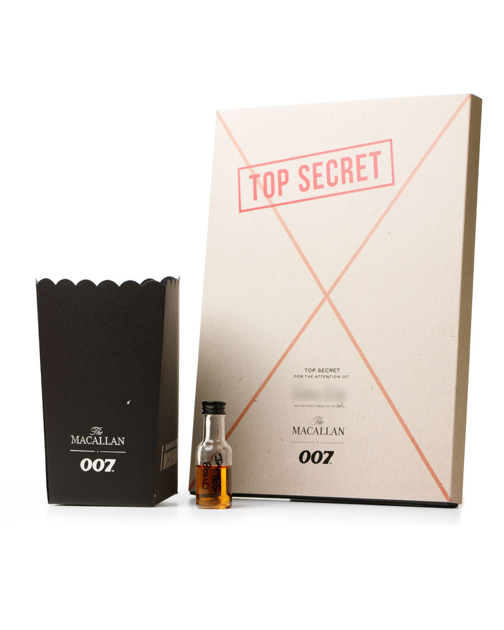 Macallan James Bond 60th Anniversary In Cinema 007 Popcorn Box, Macallan Sample, & 'Top Secret' File Containing A Skyfall Lodge Print