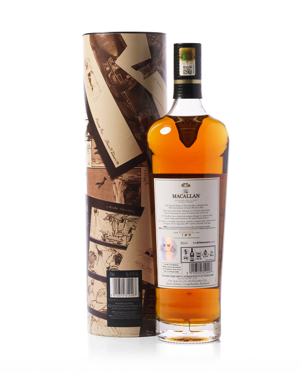 The Macallan James Bond expressions were released in 2022 in celebration of 60 years since the premier of the first James Bond movie - Dr. No - in 1962. Over the last 50 years James Bond has been played by 7 different actors in the last 6 decades.