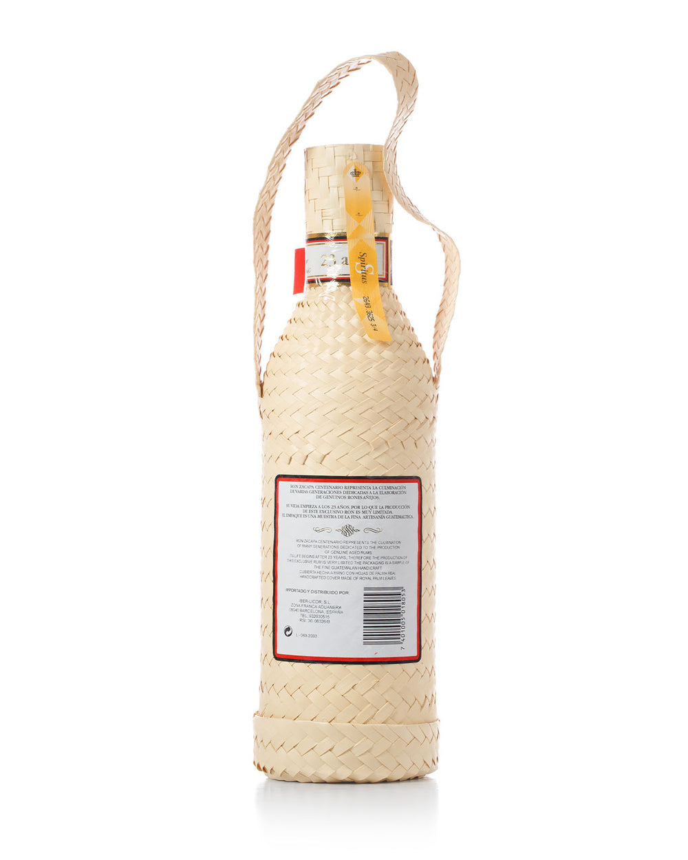 This is a bottle of Ron Zacapa Centenario 23 Year Old  Guatamalan Rum, 75cl, 50% abv. The bottle is wrapped in a hand-woven 'petate' made from palm leaves.