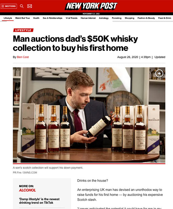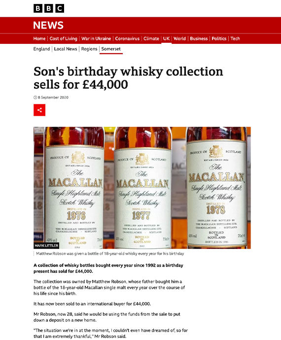 In 2020 we sold a vertical of Macallan 18 Year Old for Matthew Robson – news of the sale went viral and was featured from New York to New Dehli. More recently in 2022 Mark made the news again when he successfully brokered the sale of a full collection of Aberlour A'bunadh back to the Aberlour distillery.